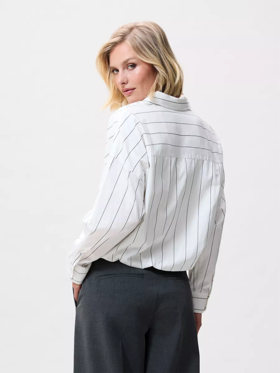 Catwalk Junkie Blouse Dames – Witte Gestreepte Blouse met Elastische Zoom | Dock 54