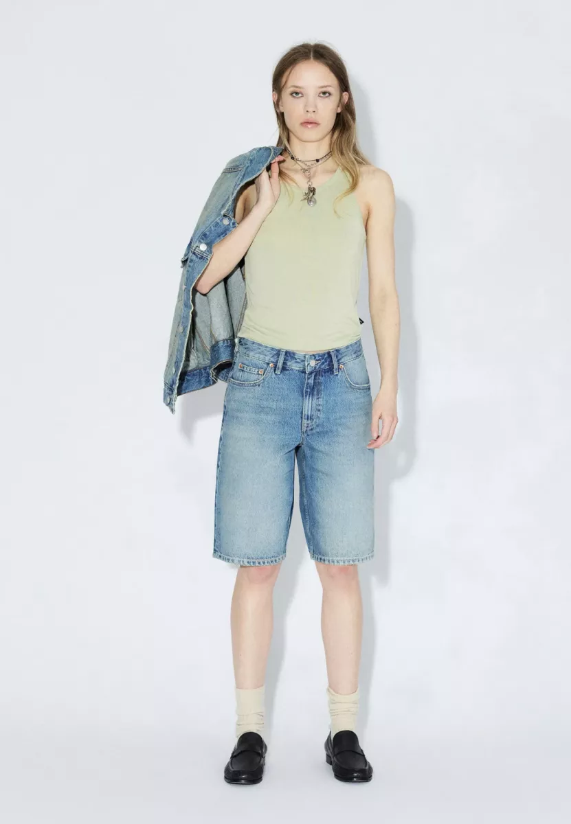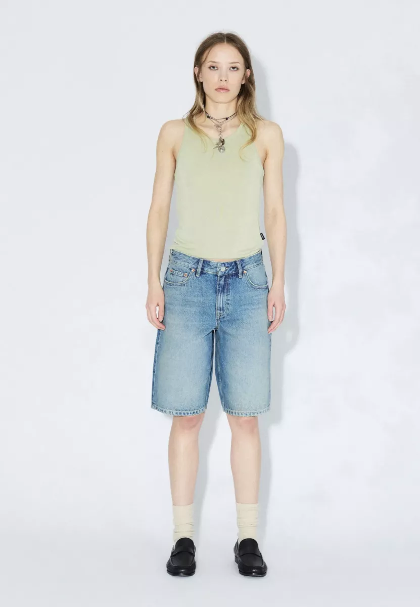 Ideaal voor wie zoekt naar een Dr. Denim short dames, denim short zonder stretch, relaxed fit jeans short of een lichtblauwe dames short met rechte pijp.