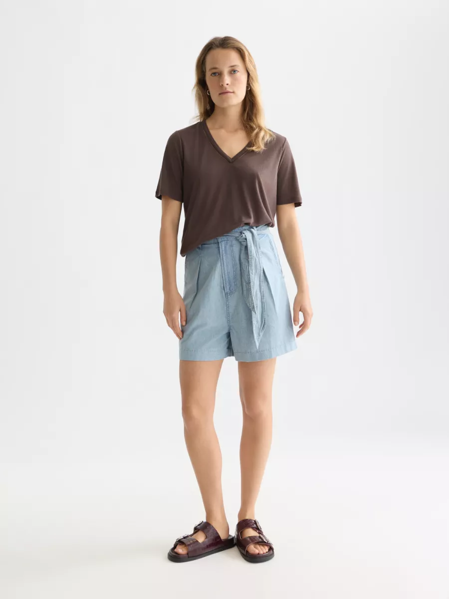 Door de lichte indigo denimkleur past deze short perfect bij zowel neutrale tinten als kleurrijke prints uit de zomerse collectie.