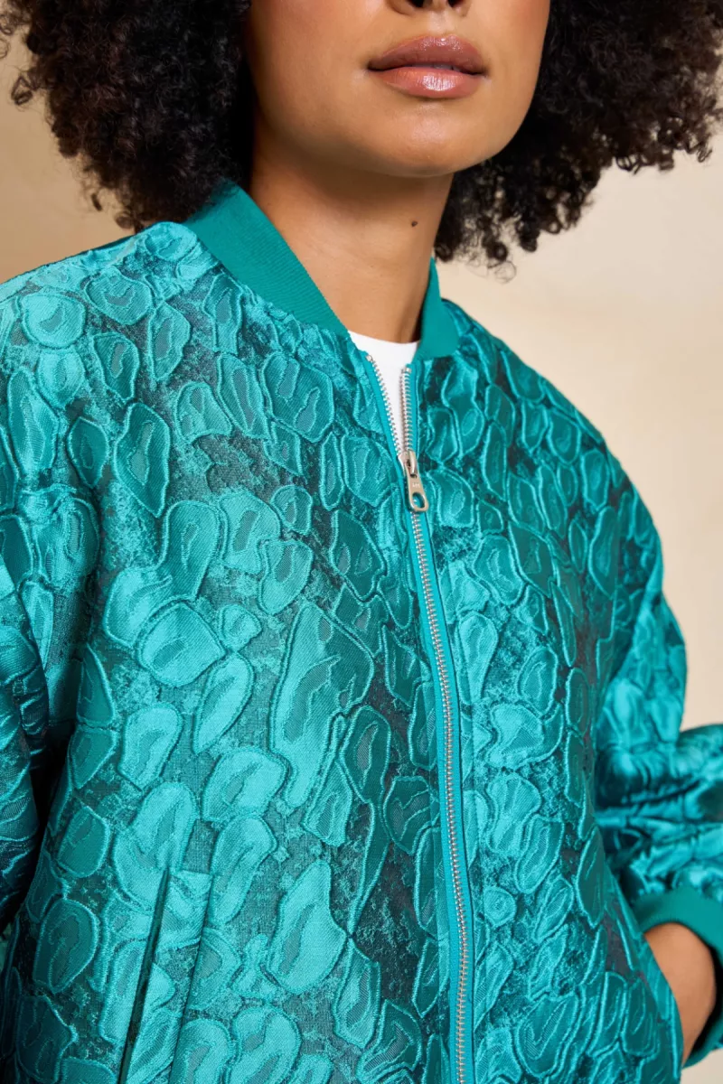Lofty Manner Jacket Alvee – teal jacquard bomber jacket