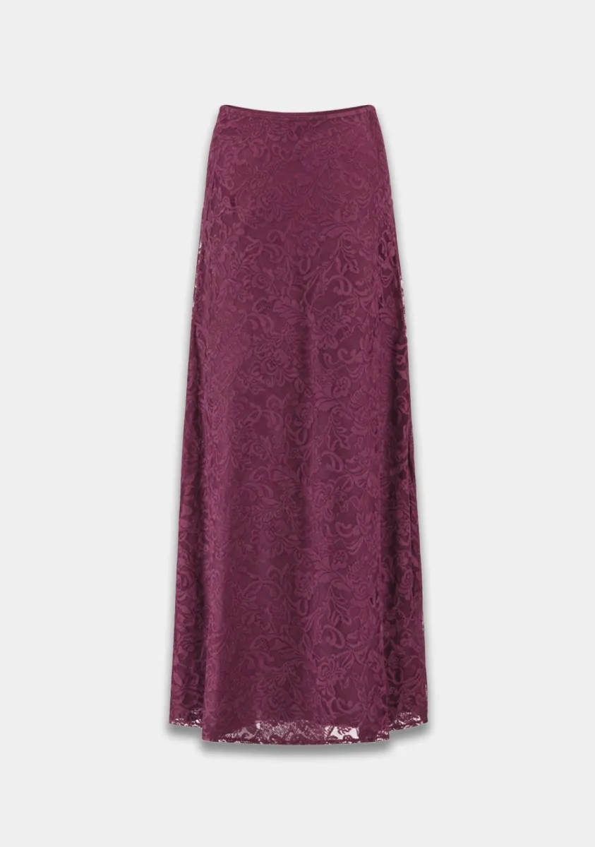 De Harper & Yve Jake-SK lange rok in rood is een echte eyecatcher voor elke garderobe. Deze lange dames rok heeft een elegante, vrouwelijke uitstraling dankzij de verfijnde kanten structuur en soepel vallende stof. De diepe rood/paarse tint zorgt voor een luxe en opvallende look, perfect voor zowel een casual als geklede outfit.