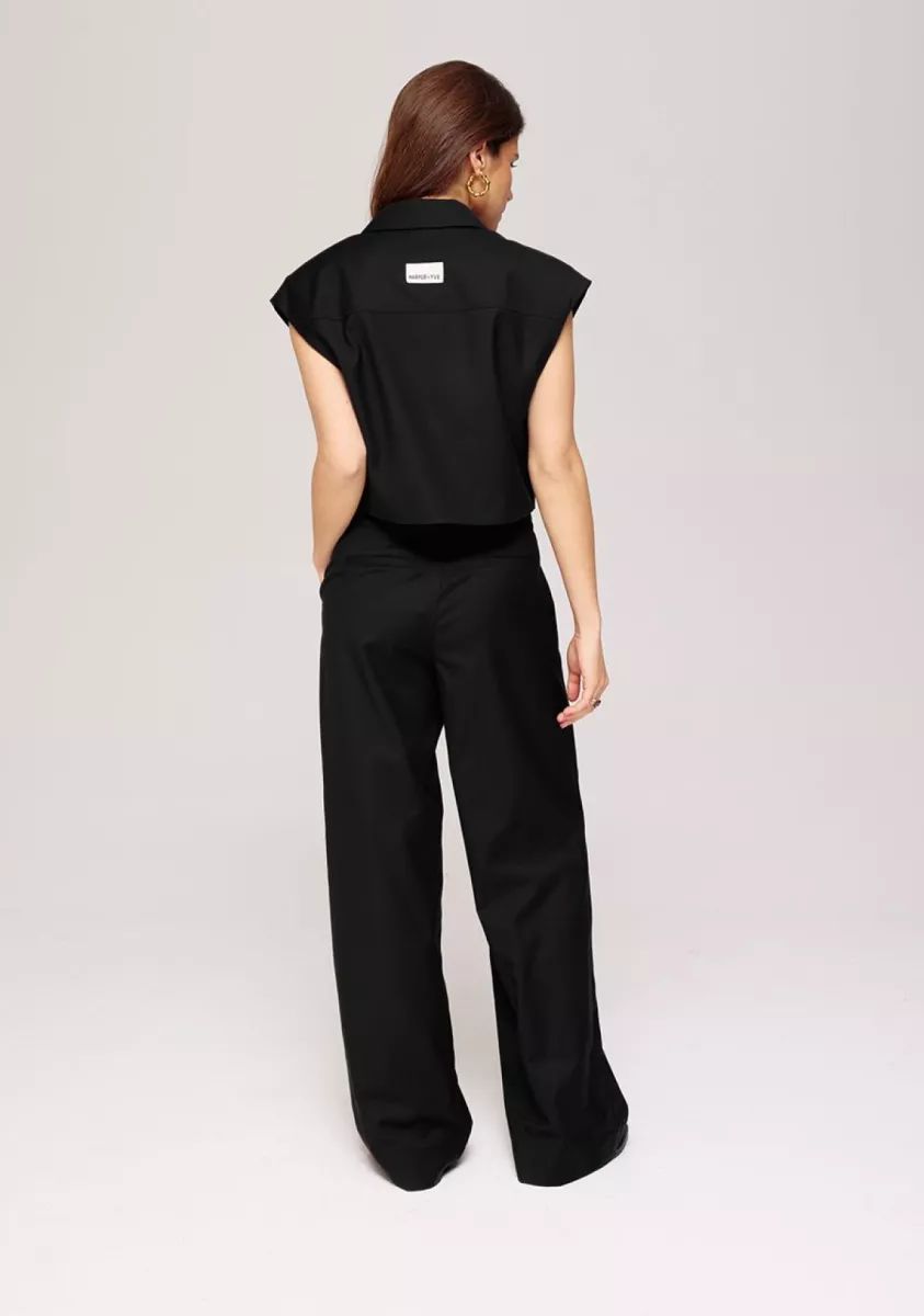 Het ESMEE gilet in het zwart is een stijlvolle tussenlaag die je look in n keer naar een hoger niveau tilt. Het mouwloze model is gevoerd, heeft een rechte pasvorm en is voorzien van een knoopsluiting met subtiel ton-sur-ton stikwerk. Draag er een overhemd onder voor een klassiekere look tijdens koudere dagen of als los item. In combinatie met de bijpassende zwarte SADIE broek.