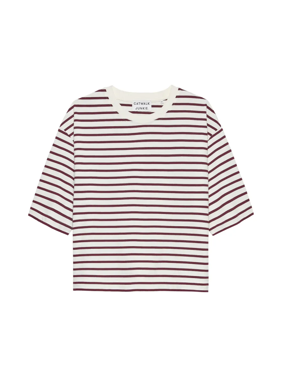 Catwalk Junkie gestreept T-shirt dames loose fit bordeaux wit 2602020202