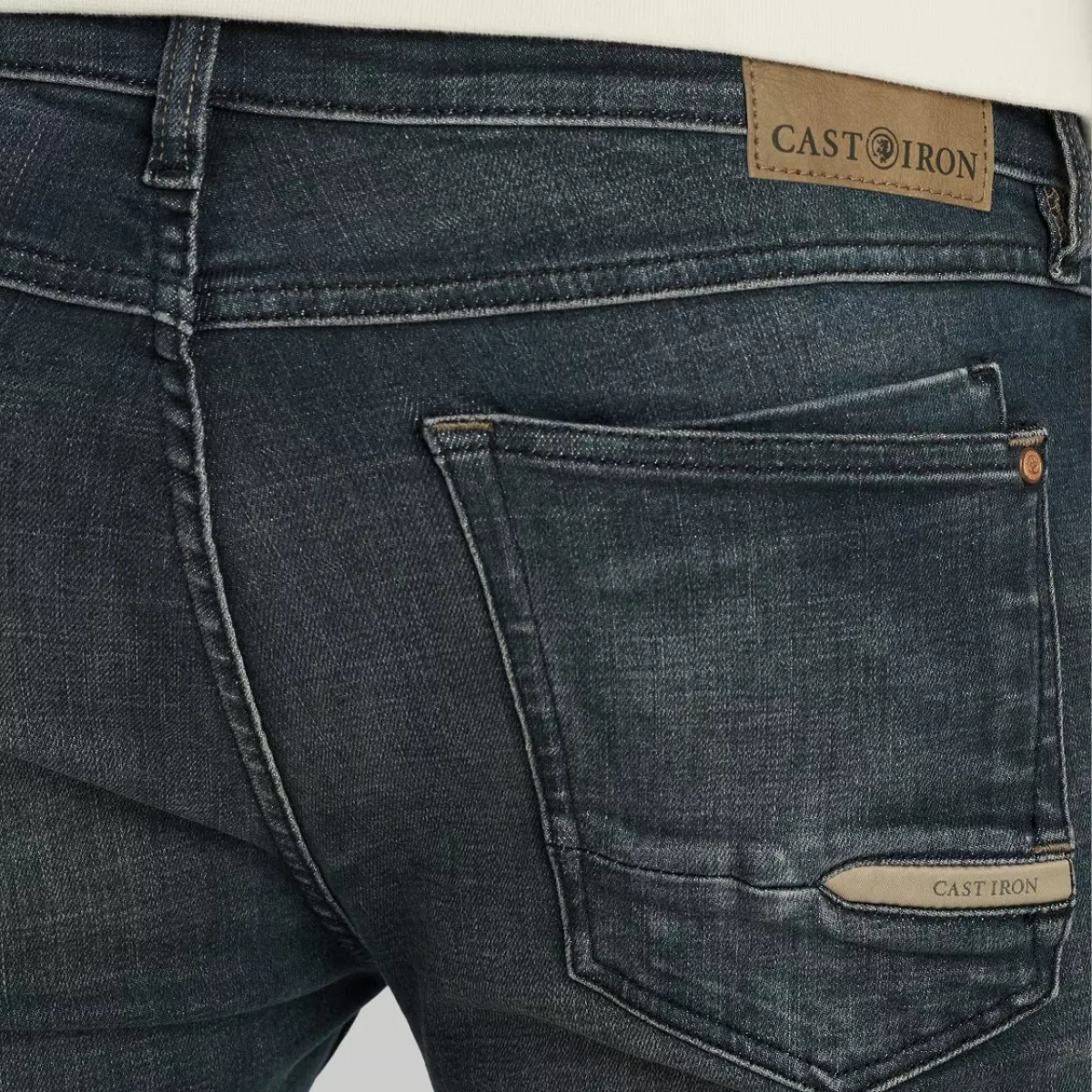 De Shiftback denim is uitgevoerd in een moderne tapered fit die relaxed zit in de taille en vanaf de knie smaller toeloopt. De combinatie van de authentieke denim look met het comfort van superstretch denim maakt de Shiftback bijzonder. Naast de koperen trimmings en de signature Cast Iron branding zorgen nieuwe details, zoals de dubbele achterzak, voor de finishing touch.