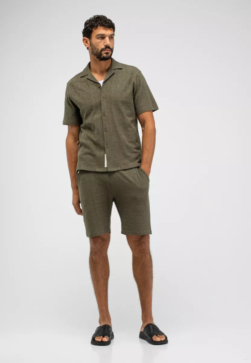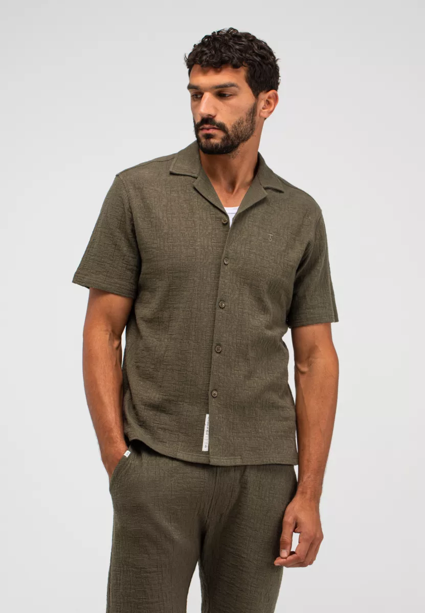 Butcher of Blue Ripley Structure Shirt – groen heren overhemd korte mouw