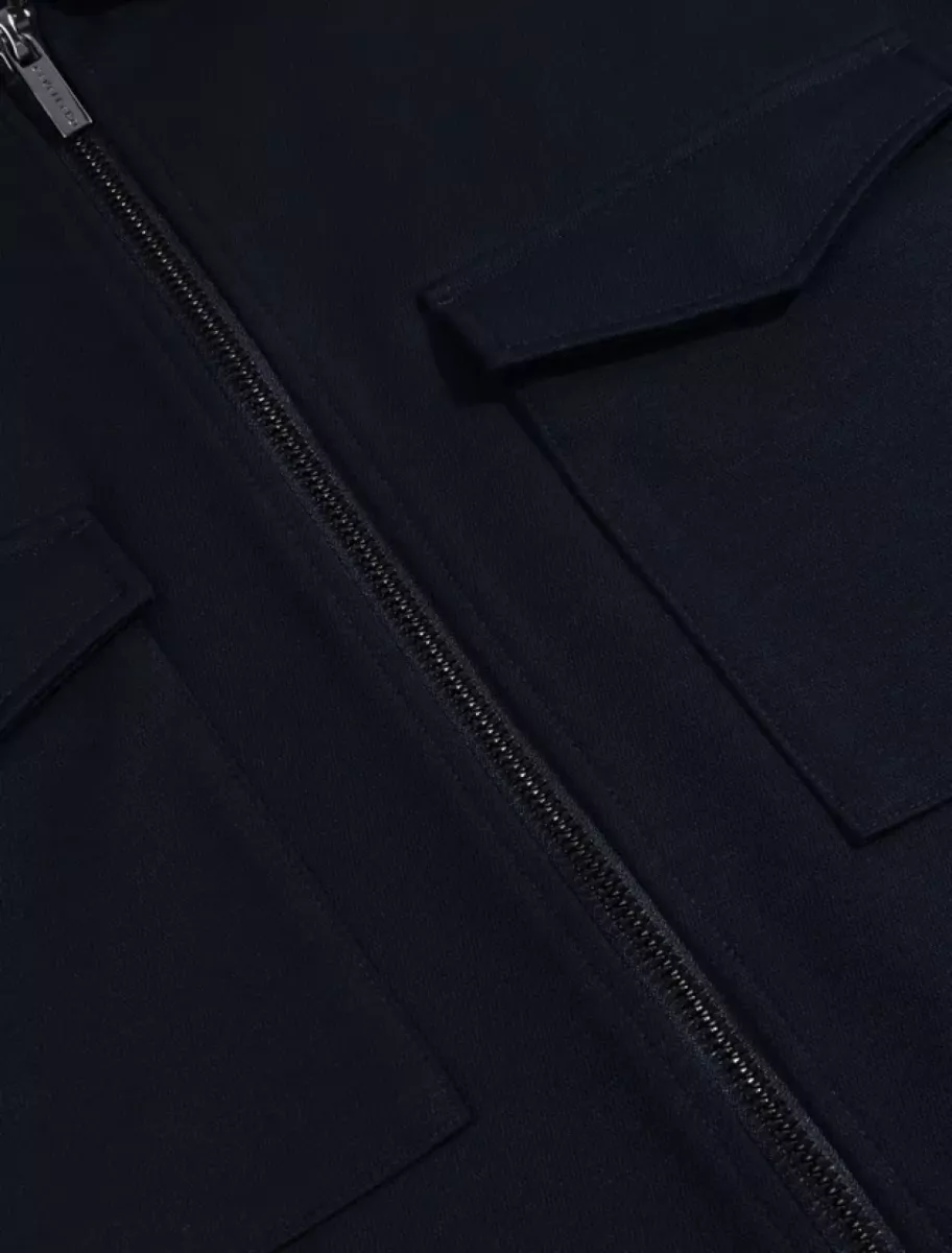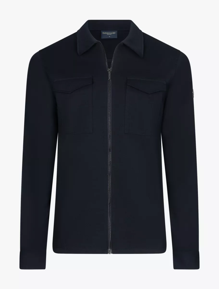 De ritssluiting geeft het overshirt een eigentijdse en sportieve uitstraling, terwijl de opgestikte klepzakken en steekzakken met meshvoering zorgen voor extra functionaliteit. De subtiele logo badge op de mouw onderstreept de luxe signatuur van Cavallaro Napoli. Door de diepe donkerblauwe kleur is dit overshirt perfect te combineren binnen zowel een casual als smart casual heren outfit.