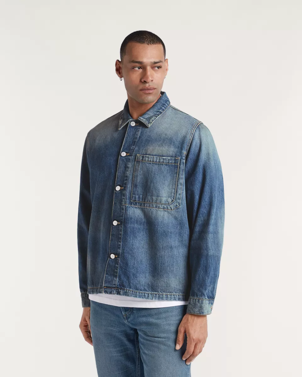 Ontdek het Denham Chore Overshirt van 11 oz. Candiani-denim. Tijdloos, stoer en veelzijdig te dragen als overshirt of lichte jas
