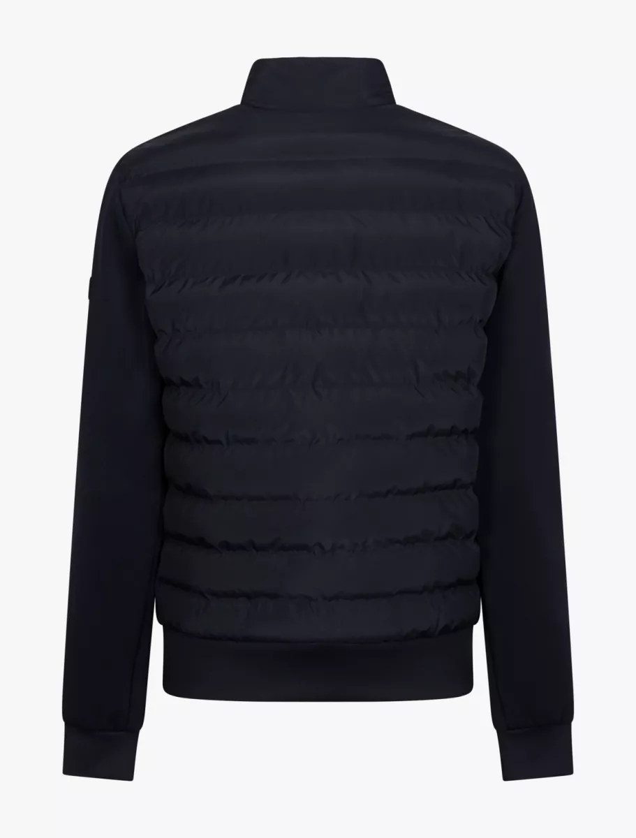 De Cavallaro Napoli Quintino jas in donkerblauw is een moderne herenjas die sportiviteit en verfijning moeiteloos combineert. Deze bestseller is uitgevoerd in een comfortabele regular fit en voorzien van een gewatteerd quilted patroon aan de voor- en achterzijde. De combinatie met zachte jersey mouwen zorgt voor extra bewegingsvrijheid en een eigentijdse uitstraling.