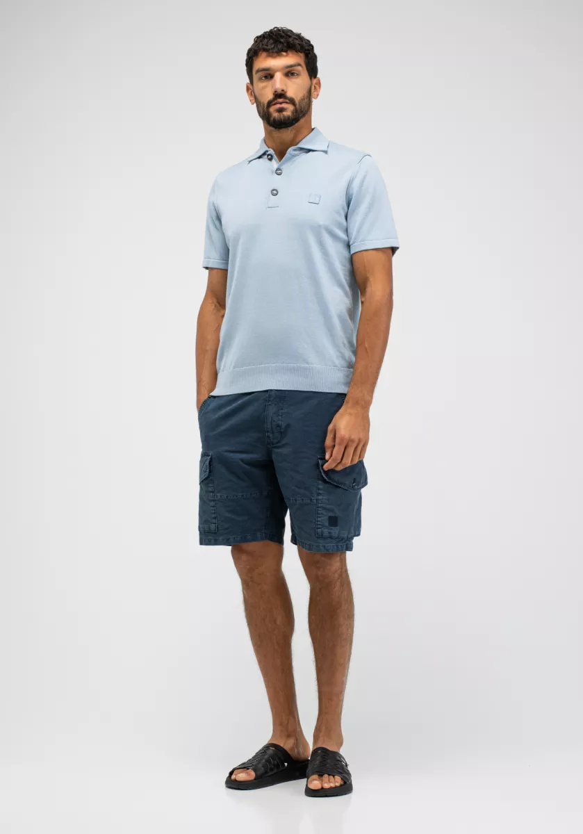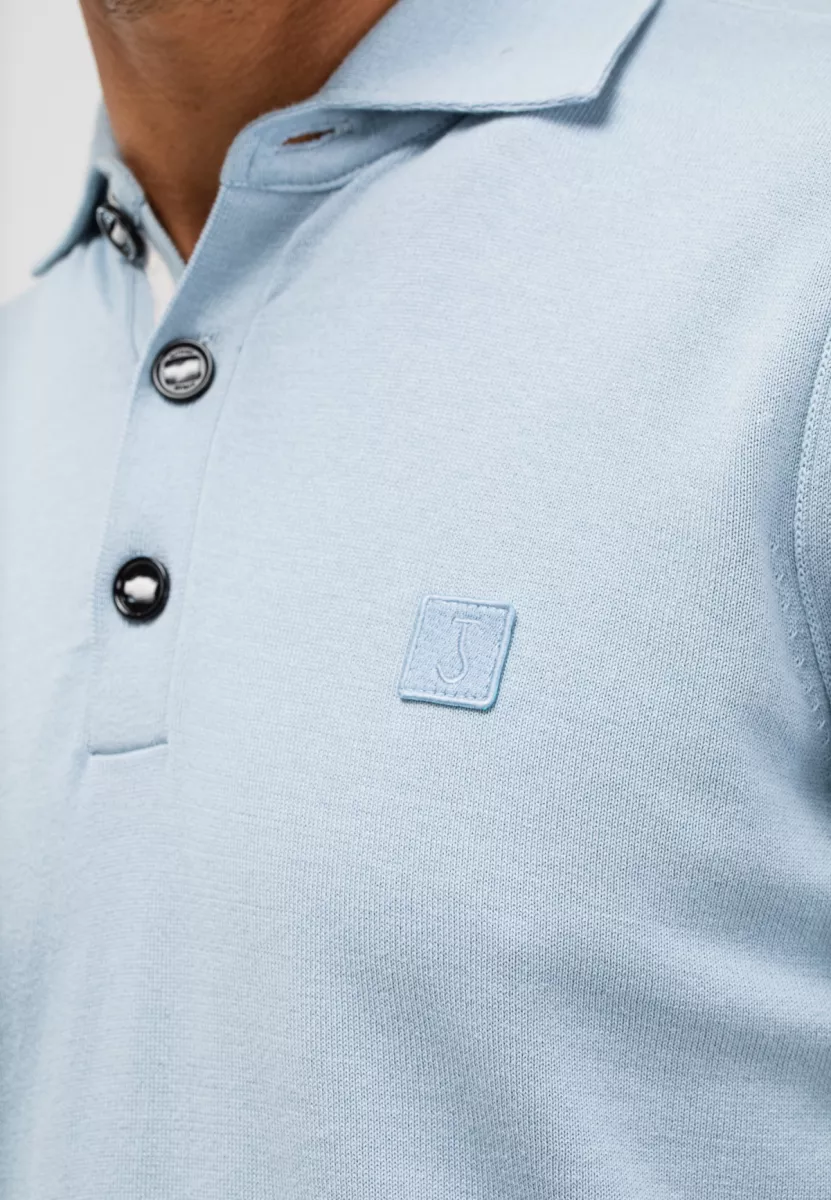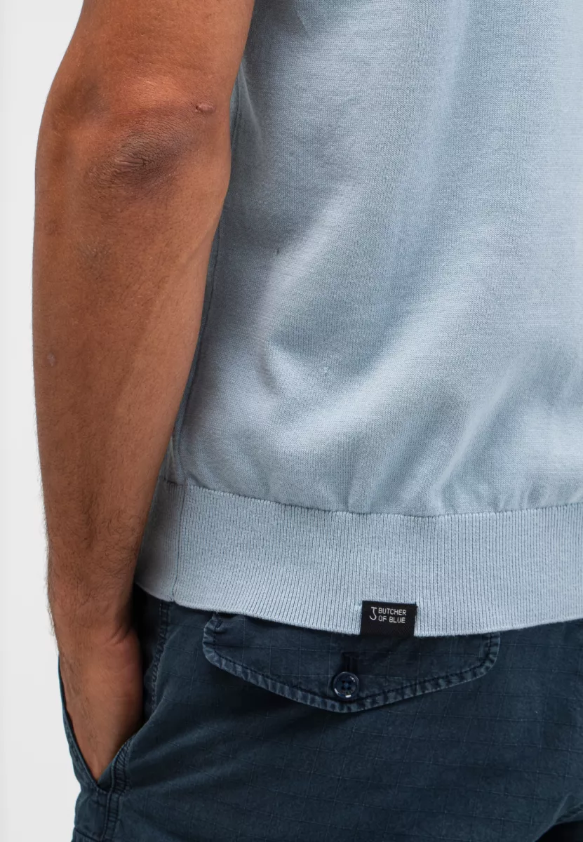 Butcher of Blue Clifden Knit Polo lichtblauw – heren polo knit van organisch katoen
