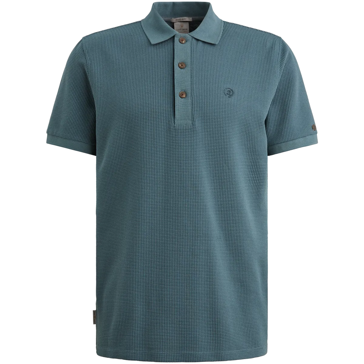 Deze Cast Iron polo in de kleur Oceanview is een stijlvolle upgrade van de klassieke polo. Wat dit item direct onderscheidt, is de subtiele wafelstructuur in de stof. Deze structuur geeft de polo een stoere en luxe uitstraling die je niet terugziet bij standaard polo’s.