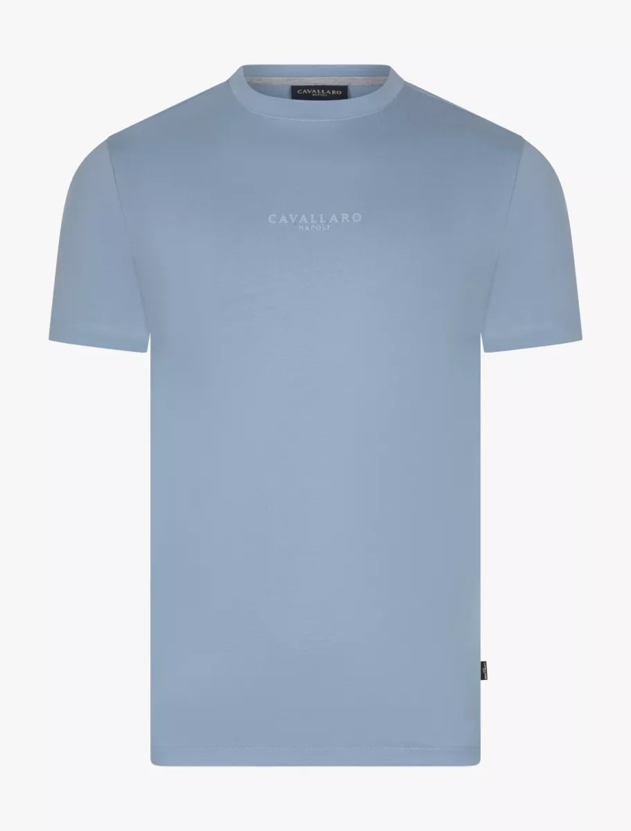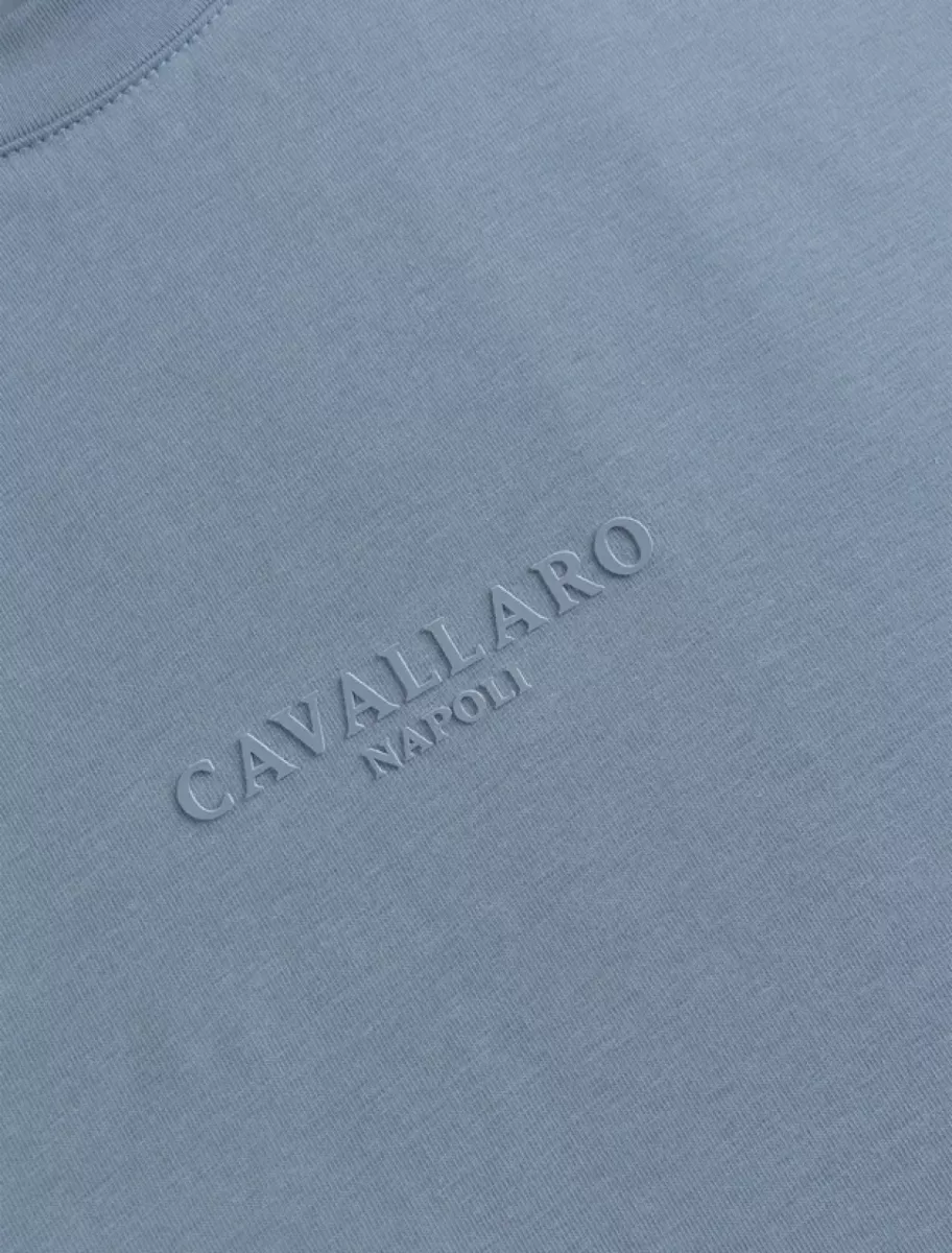 Cavallaro Napoli Bari T-shirt Lichtblauw – Heren T-shirt met Ton-sur-ton Logo – Regular Fit