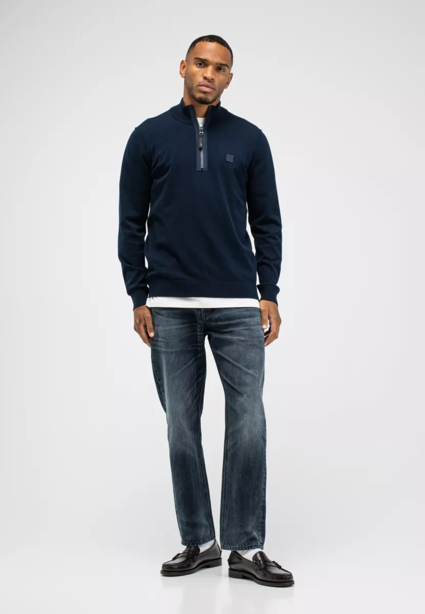 Deze half zip trui voor heren is perfect te combineren met een jeans voor een casual look, maar staat net zo goed op een chino voor een meer verzorgde uitstraling. Draag de rits iets open met een T-shirt eronder voor een relaxte vibe, of volledig dicht op koelere dagen. Dankzij de normale pasvorm is de Clifden trui ideaal als laagje in elk seizoen.