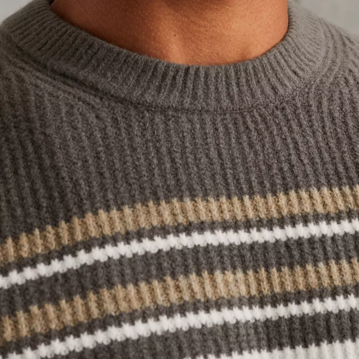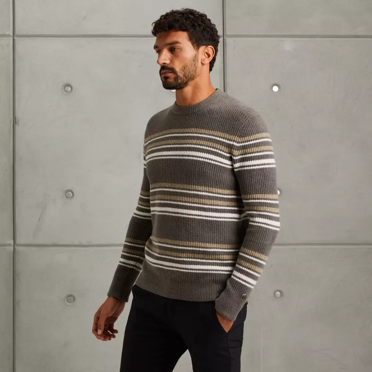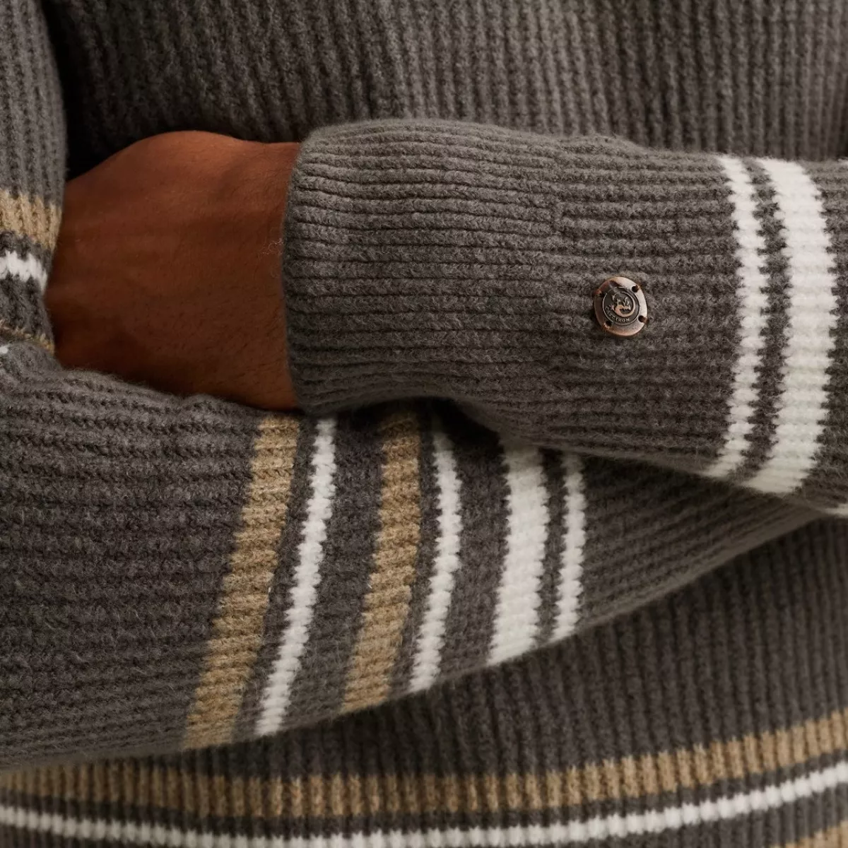 Deze Cast Iron trui is de perfecte toevoeging aan je kledingkast voor het najaar. De trui is uitgevoerd in een zeer comfortabele, zachte katoenblend. Het stoere streeppatroon en de ribstructuur maken van deze trui een must-have. De signature Cast Iron details ronden het design af.