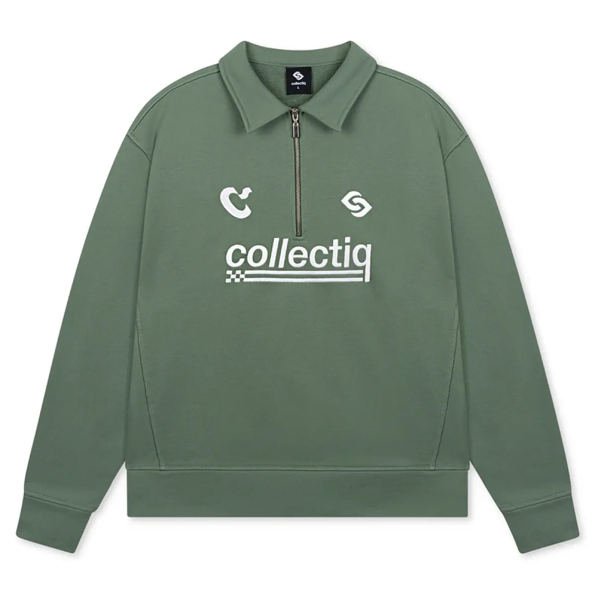 De Collectiq Group C Half Zip in myrtle groen is een perfecte combinatie van sportieve invloeden en moderne streetwear. De diepe groene kleur geeft deze sweater een frisse, maar tegelijk rustige uitstraling die makkelijk te combineren is. De geborduurde Collectiq graphics op de borst zorgen voor een herkenbare en premium look.