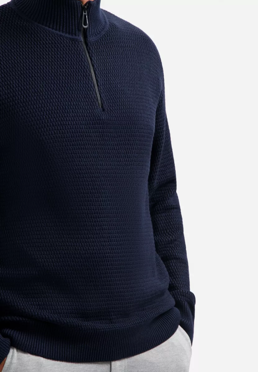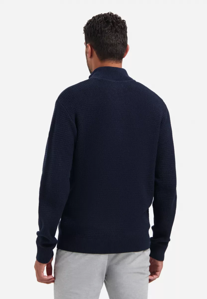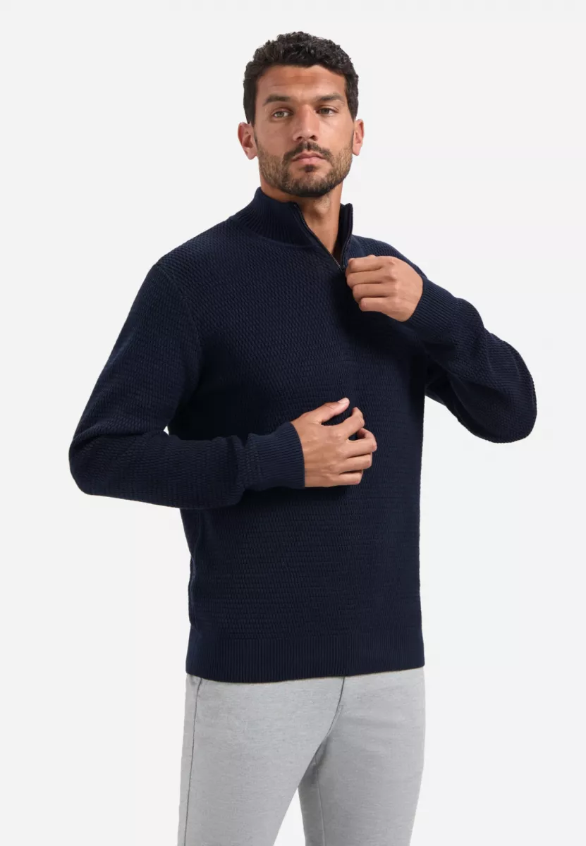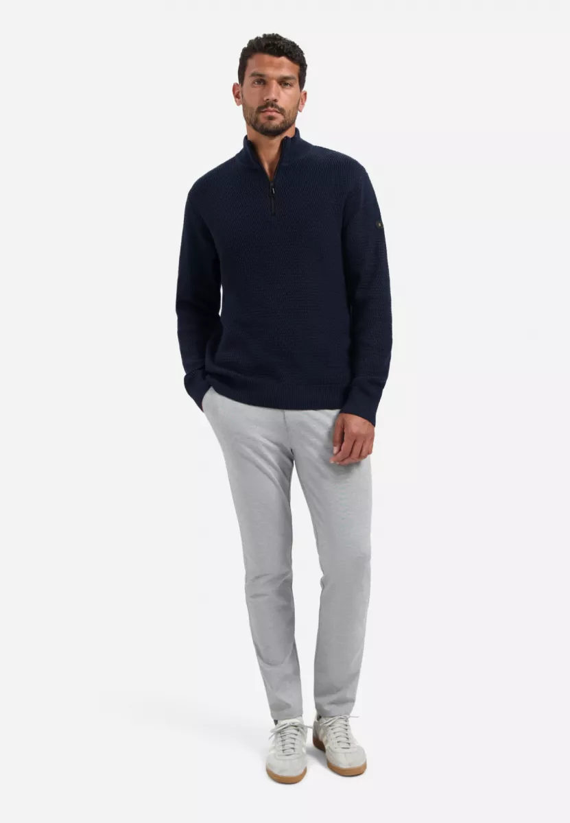 Deze grofgebreide half-zip pullover van No Excess combineert een sportieve uitstraling met een stoer karakter. De rijke melange structuur geeft de trui diepte en een robuuste look, terwijl de half-zip en de opstaande kraag zorgen voor extra warmte op koudere dagen. Dankzij de regular fit draagt deze pullover comfortabel en past hij perfect binnen een casual herengarderobe voor het FW25-seizoen.