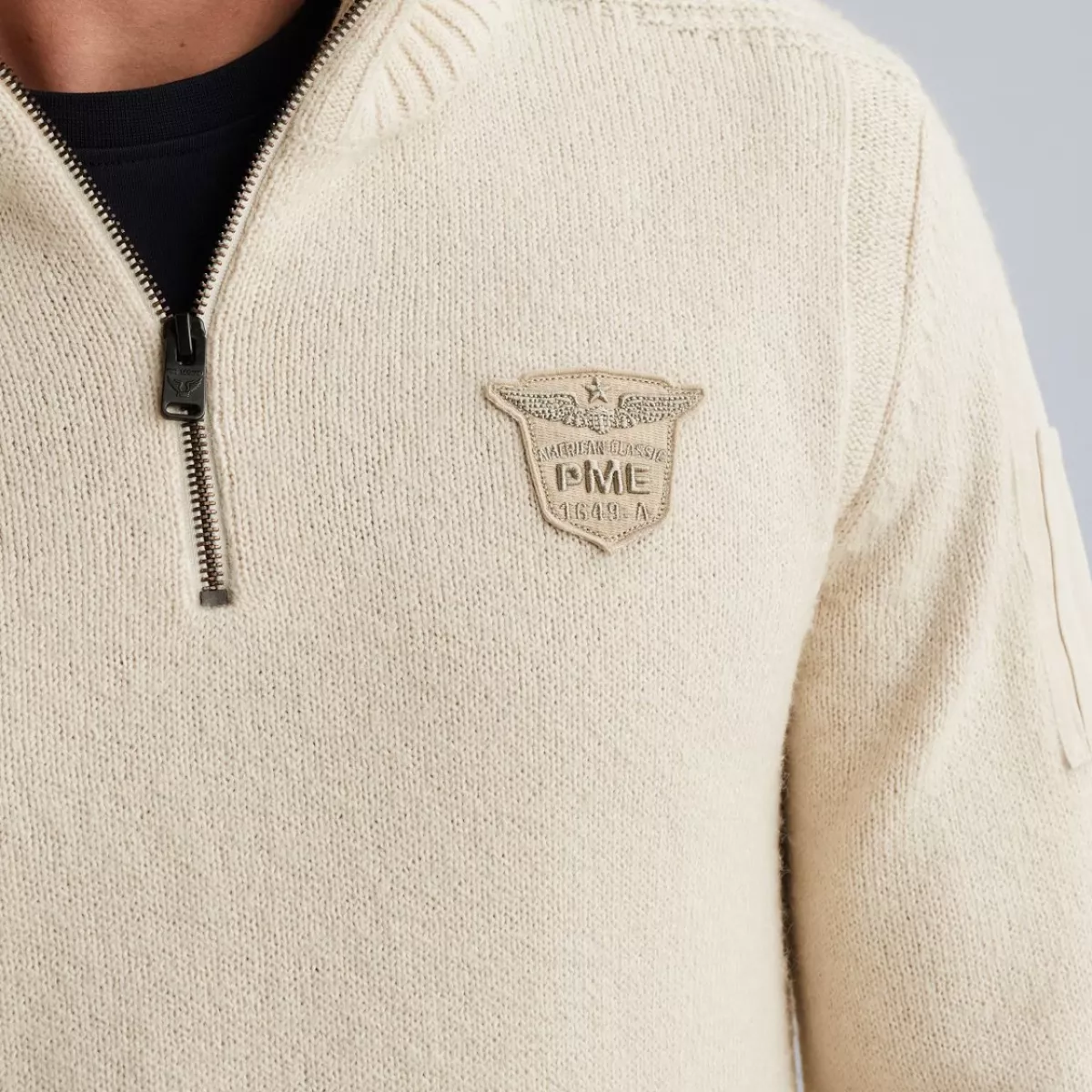 Op de borst vind je een subtiel PME Legend badge in ton-sur-ton kleur, wat zorgt voor een rustige en stijlvolle uitstraling. De ribboorden aan de mouwen en onderkant houden de vorm mooi vast en geven extra draagcomfort. Het is precies zo’n trui die je er telkens weer bij pakt op koudere dagen, of je hem nu combineert met een denim, cargo of onder een winterjas.