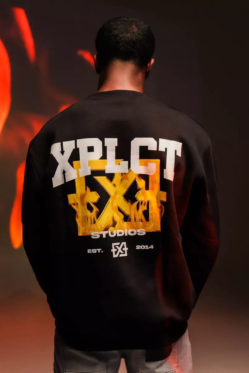 XPLCT | Sweats | Zwart | Flame Crewneck