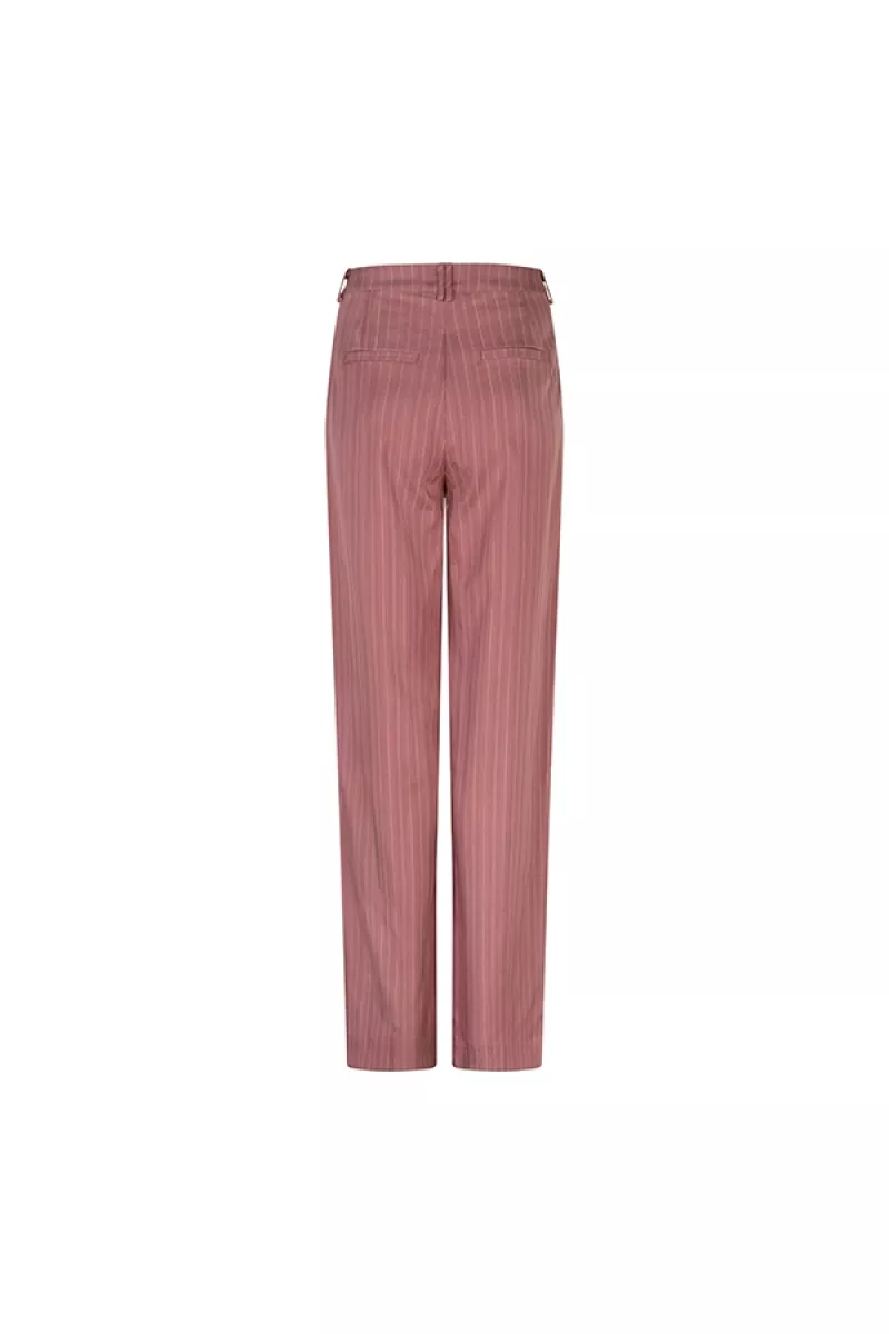 De Junae broek van Lofty Manner is een stijlvolle dames broek met een elegante en moderne uitstraling. Deze mauve pink broek heeft een straight leg pasvorm en een hoge taille, wat zorgt voor een flatterend silhouet. De subtiele glans in de stof en het fijne streepdetail geven de broek een luxe en vrouwelijke look.