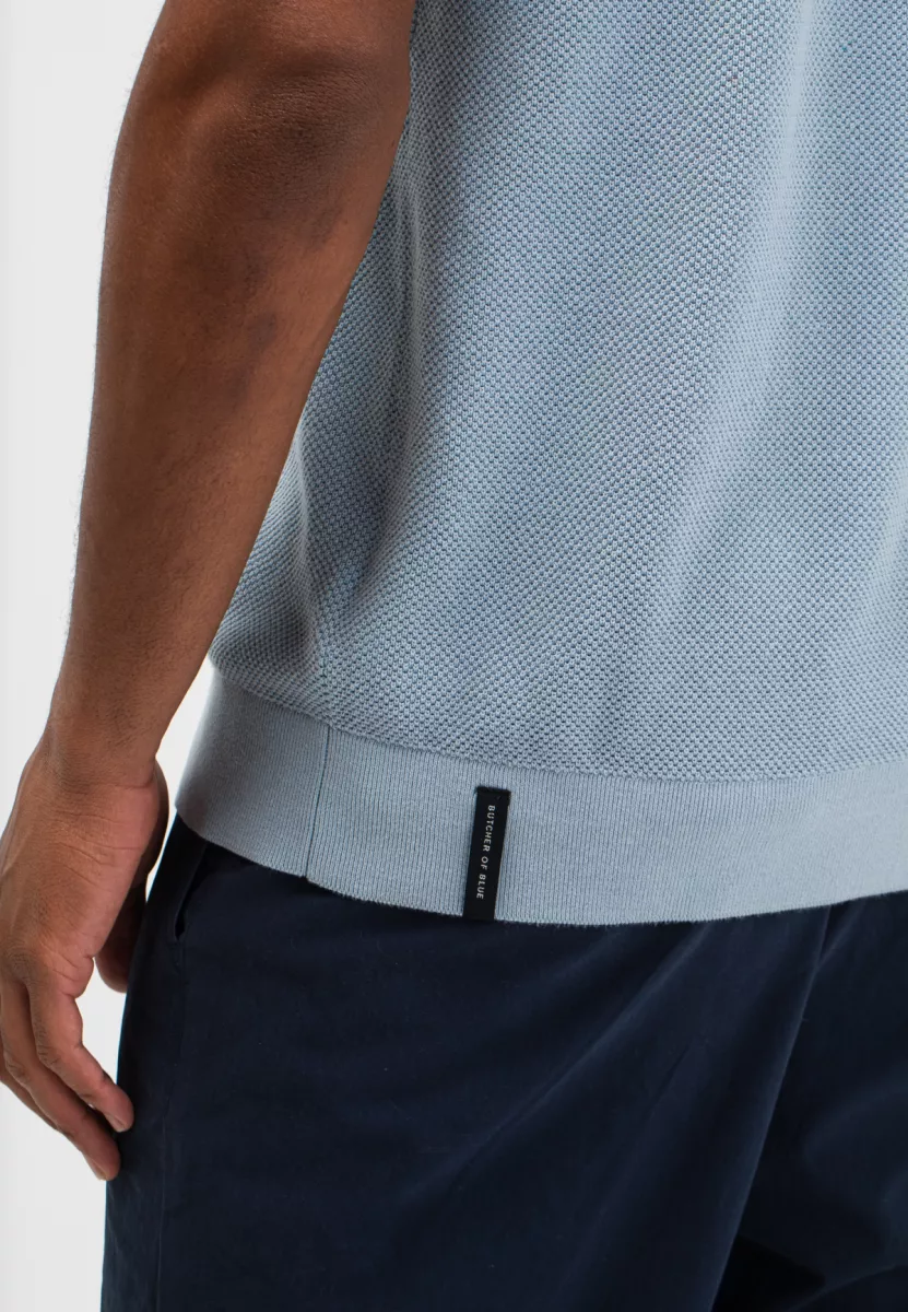 De Ripley Knit Polo van Butcher of Blue is een stijlvolle gebreide heren polo met een verfijnde uitstraling. Deze lichtblauwe polo combineert een klassieke look met moderne details en is daardoor een veelzijdig item voor iedere herengarderobe.