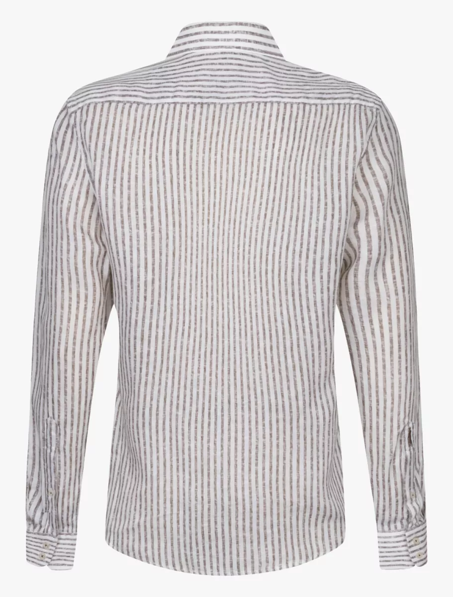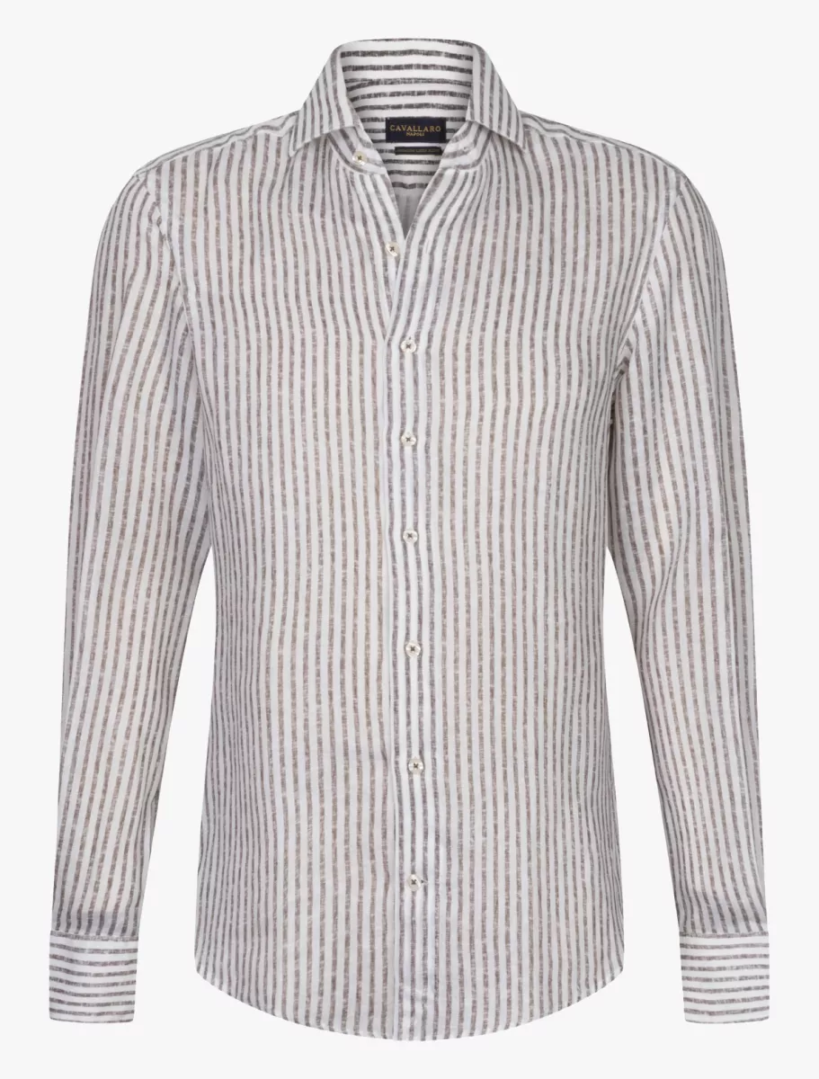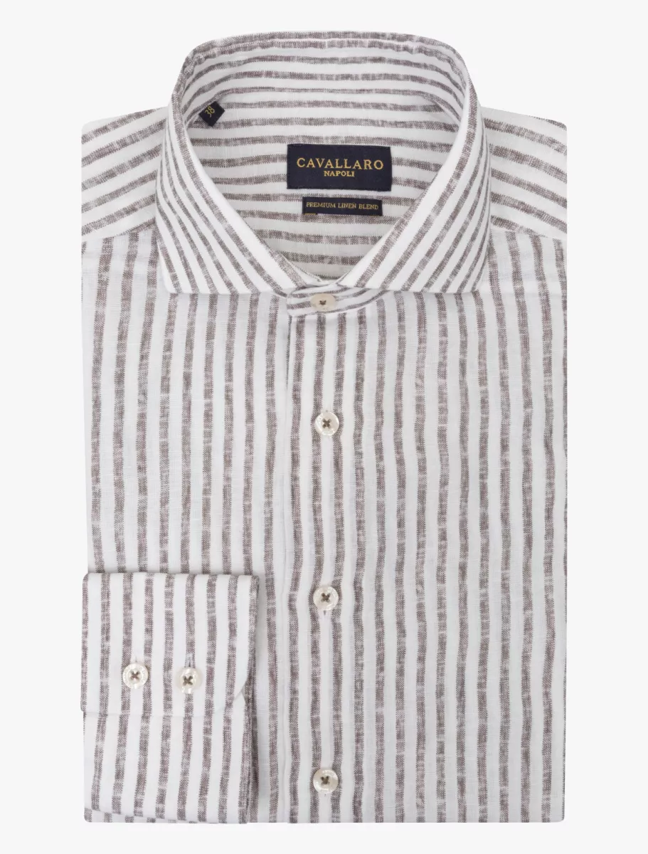 Cavallaro Napoli Tarente Overhemd Wit Bruin Gestreept – Slim Fit Linnenblend