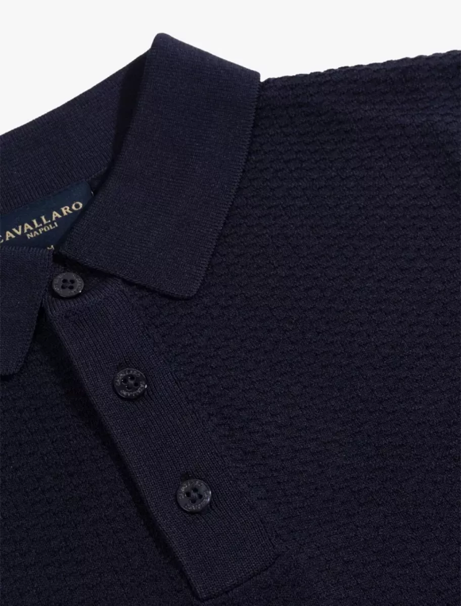 Cavallaro Napoli Milanio Polo Donkerblauw – Heren Polo Wafelbreisel – Regular Fit