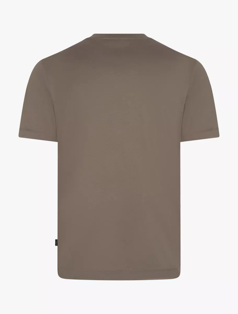 Het Luvati T-shirt van Cavallaro Napoli is een luxe heren T-shirt voor het voorjaar en de zomer van 2026. Deze uitvoering in donker taupe straalt rust en klasse uit en past perfect binnen een moderne, stijlvolle garderobe. Het T-shirt is vervaardigd uit 100% gemerceriseerd katoen, wat zorgt voor een iets zwaardere kwaliteit, een uitzonderlijk zachte touch en een subtiele, verfijnde glans.