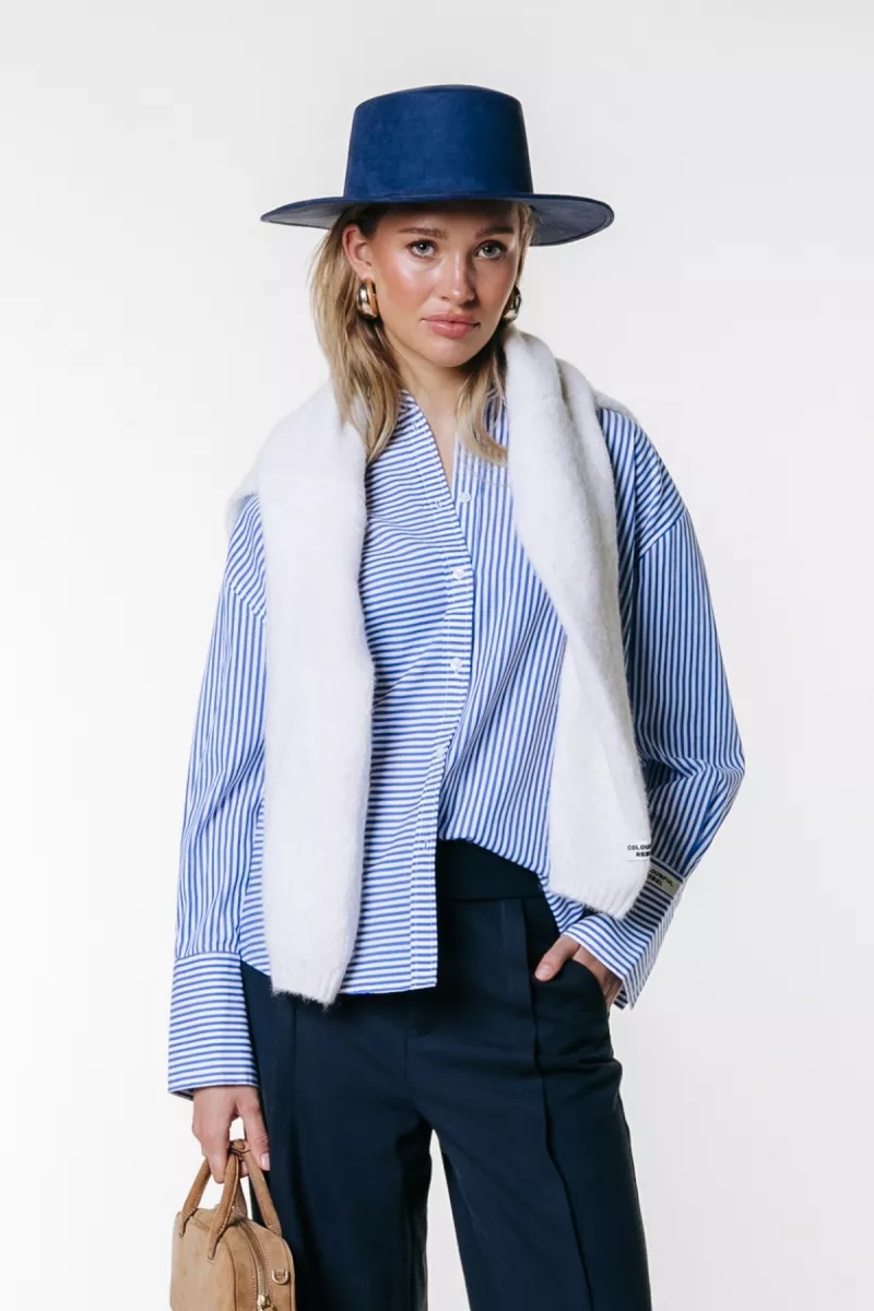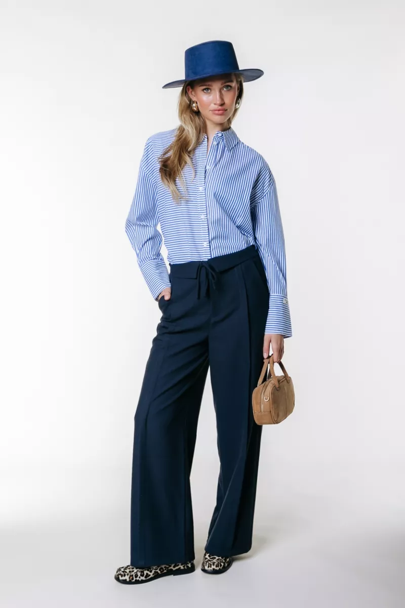 Draag deze gestreepte blouse van Colourful Rebel open over een basic top met een wide leg jeans en sneakers voor een relaxte everyday look. Liever iets meer gekleed? Combineer de blouse met een donkerblauwe pantalon en loafers voor een moderne city vibe.