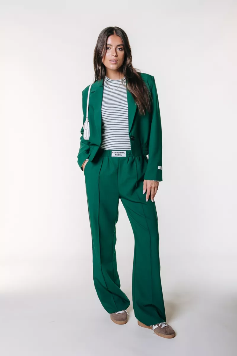 Draag deze Colourful Rebel blazer met de bijpassende groene broek voor een krachtige en modieuze set. Voor een meer casual outfit combineer je hem met een jeans en een basic T-shirt of rib top. Sneakers geven de look een sportieve touch, terwijl hakken het geheel direct eleganter maken.