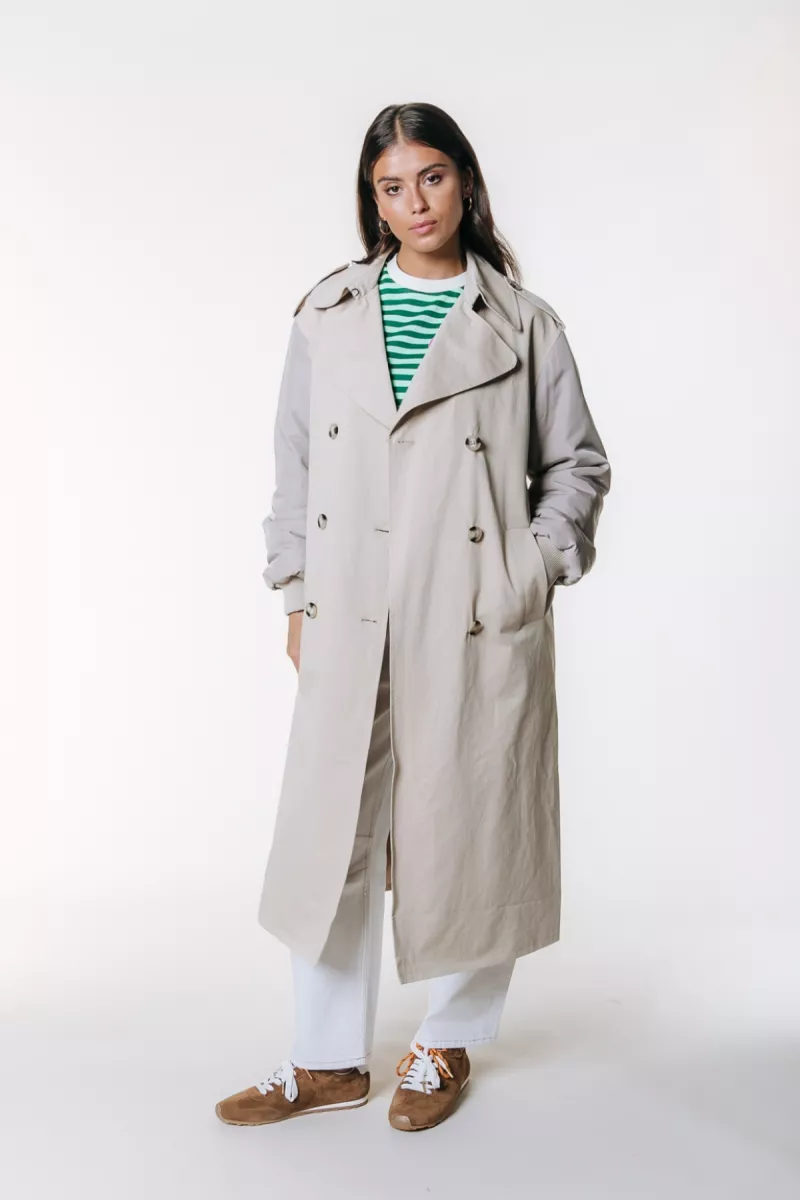 Colourful Rebel | Jas lang | Beige | Kaia contrast sleeve trenchcoa