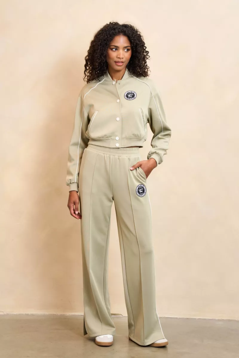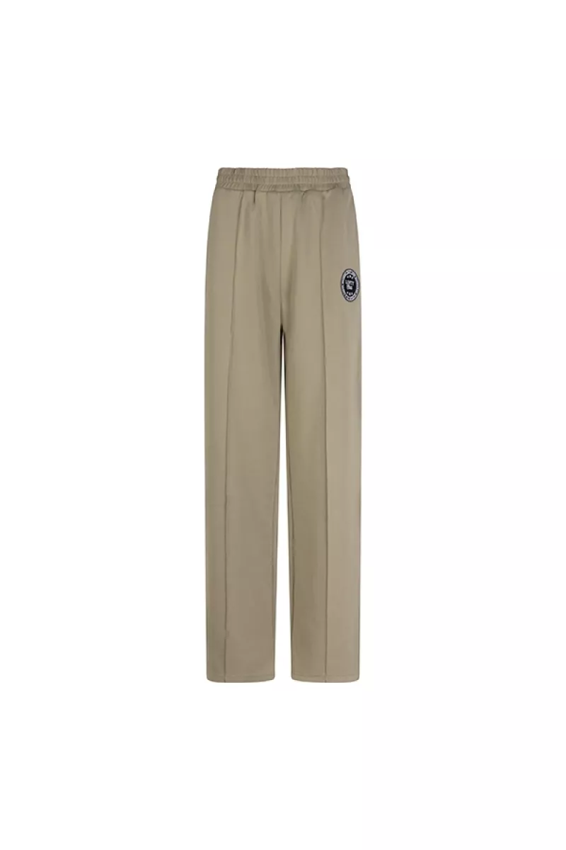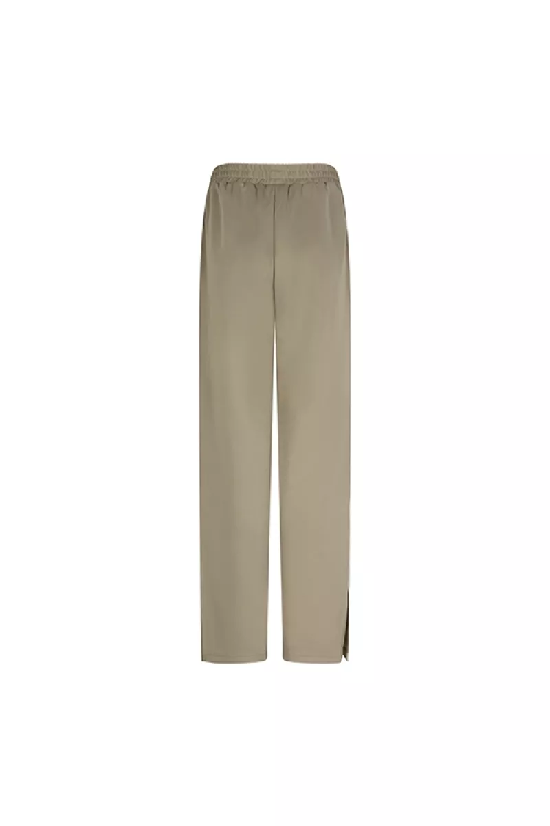 Broek Jill is een groene broek van een comfortabele sweatstof. De broek heeft een smock tailleband, subtiele split aan de onderkant en logo design op de linker broekspijp. Verder heeft de broek zowel steek- als paspelzakken. De groene joggingsbroek is qua pasvorm rechtvallend.