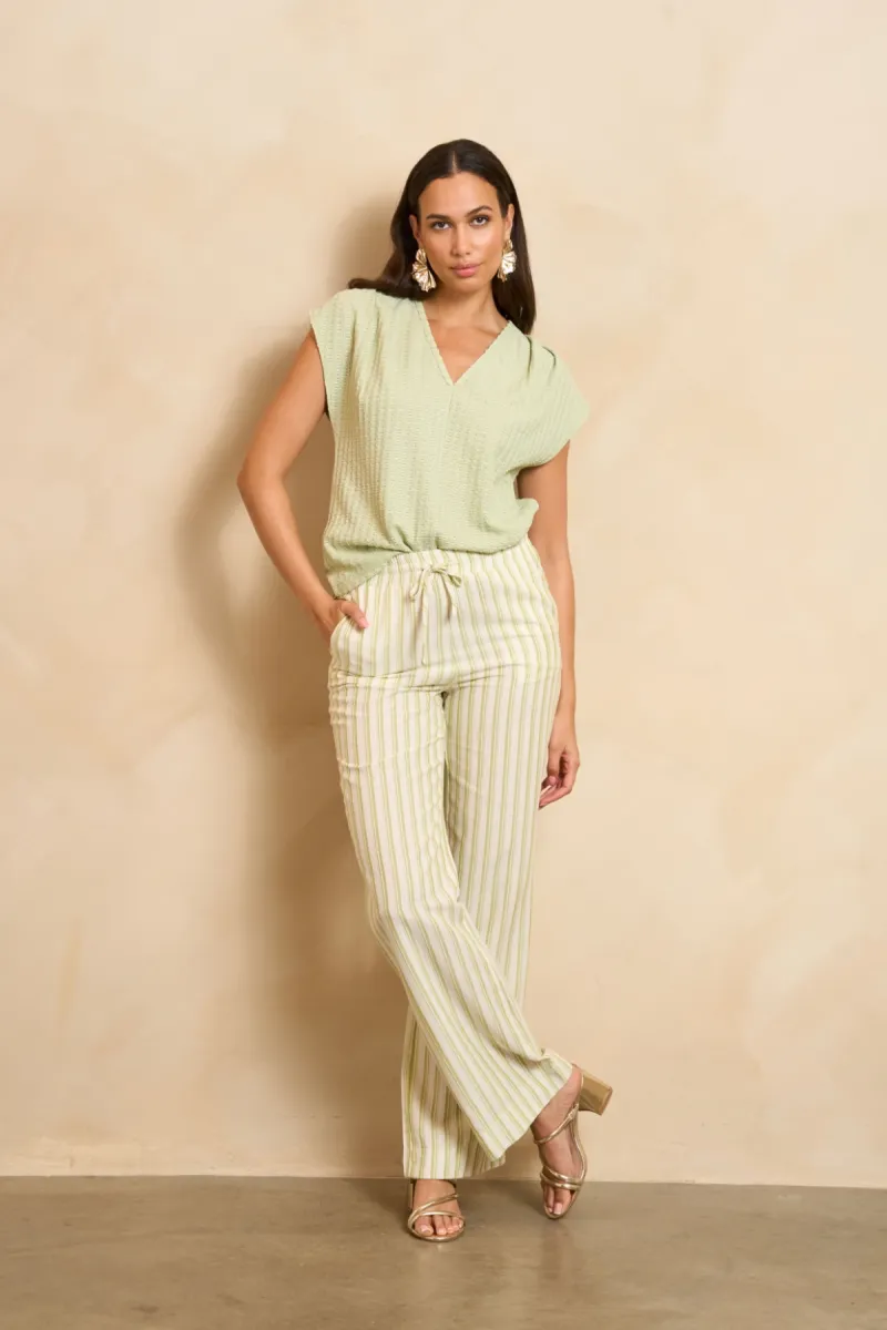 Combineer Top Elian met een nette broek zoals Salli of short Raisa voor een stijlvolle set. Voor een meer casual look draag je hem op een jeans met sneakers of sandalen. Ook mooi onder een blazer of gilet voor een gelaagde outfit die je zowel overdag als ’s avonds kunt dragen.