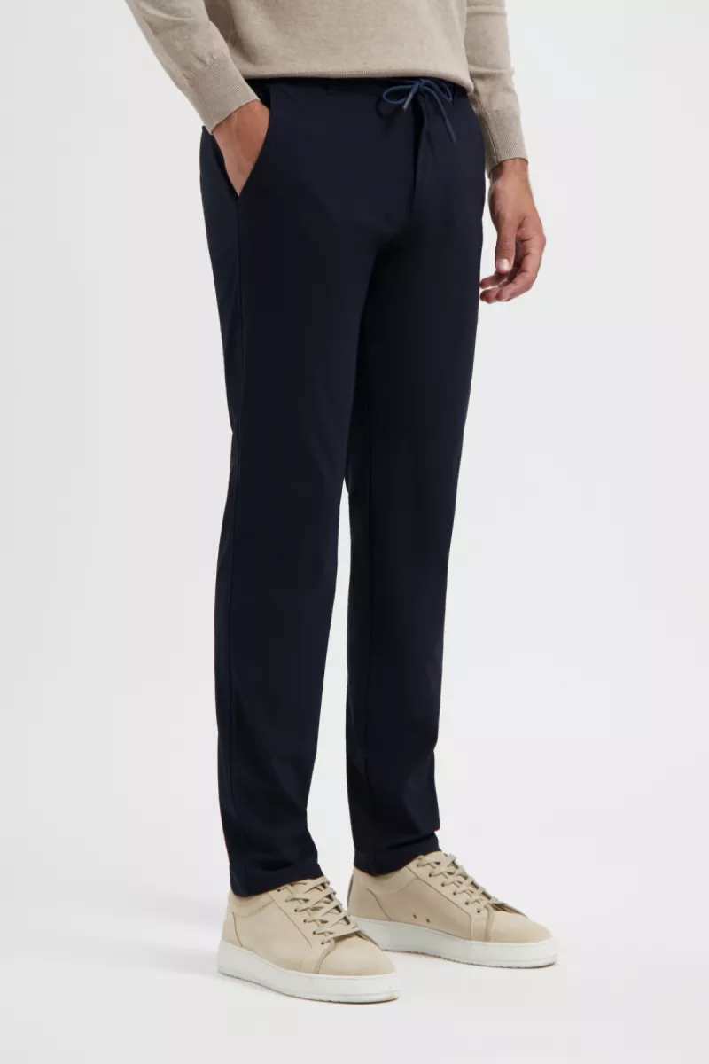 Dankzij de hoogwaardige travel stof met stretch beweegt de broek soepel met je mee en blijft hij de hele dag comfortabel zitten. De moderne pasvorm en strakke afwerking zorgen voor een nette uitstraling, terwijl het trekkoord in de tailleband extra draagcomfort geeft. Hierdoor combineert deze broek het uiterlijk van een nette pantalon met het comfort van een sportieve broek.