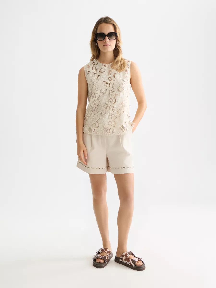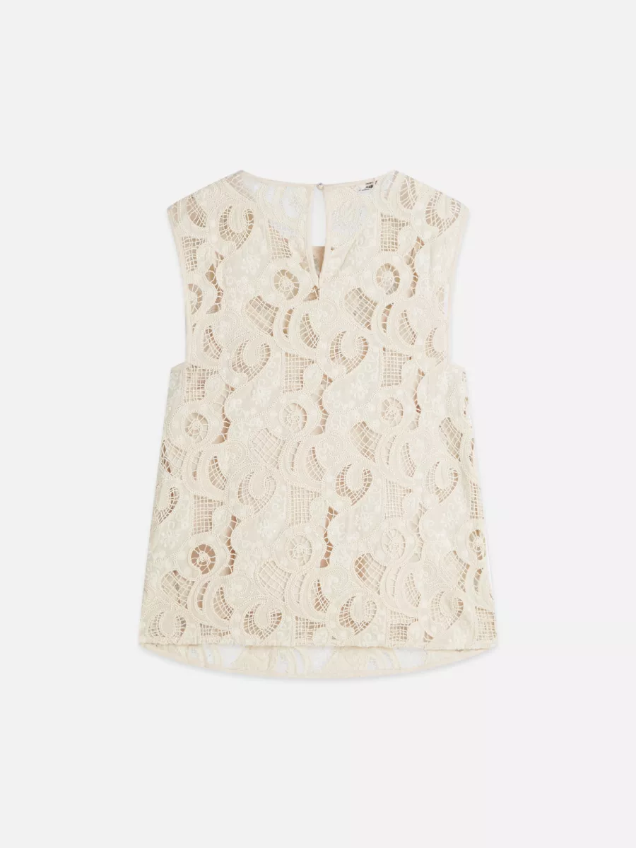 Details: Opengewerkt kant, mouwloos ontwerp, knoopsluiting aan de achterkant