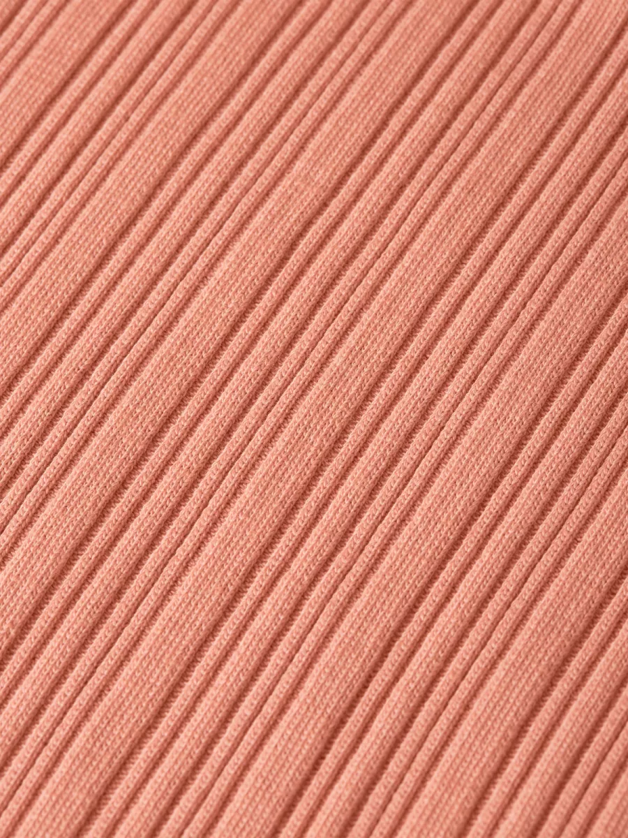 Details: Ribstructuur, subtiele golvende afwerking aan hals en zoom