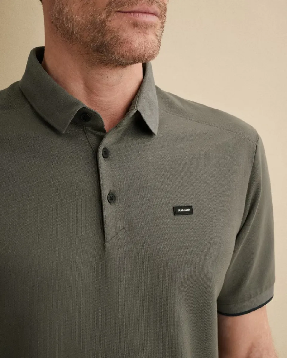 Deze Vanguard polo in een stijlvolle groene tint is een echte essential voor de moderne man. De polo is uitgevoerd in een comfortabele piqué stof met stretch, waardoor hij prettig draagt en mooi in model blijft. De klassieke kraag, knoopsluiting en subtiele Vanguard badge op de borst geven het shirt een tijdloze en herkenbare uitstraling. Perfect voor zowel een casual als een nette look.