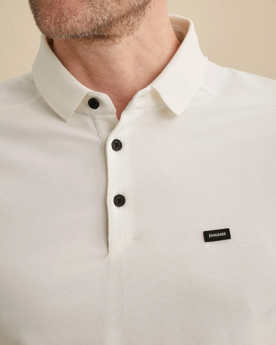 Deze Vanguard polo in wit is een frisse en tijdloze essential voor iedere herengarderobe. De polo is uitgevoerd in een comfortabele piqué stof met stretch, waardoor hij niet alleen stijlvol oogt maar ook heerlijk draagt. De klassieke kraag, knoopsluiting en subtiele Vanguard badge op de borst geven het geheel een herkenbare en verzorgde uitstraling. De witte kleur zorgt voor een clean en veelzijdig item dat je eindeloos kunt combineren.