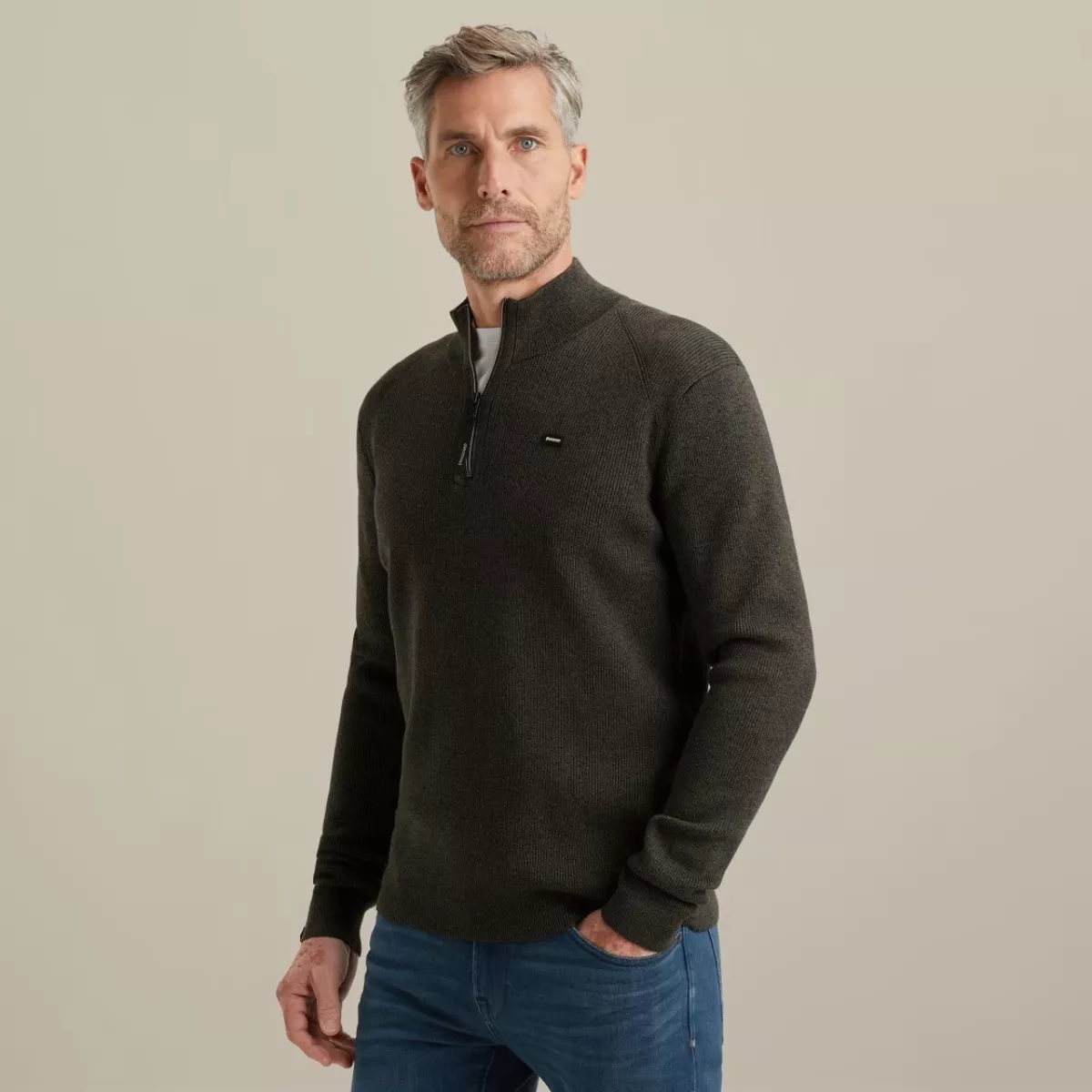 Geen garderobe is compleet zonder comfortabele, hoogwaardige knitwear. Deze Vanguard trui met halve rits is onderdeel van onze Gentleman’s Deal. Hij is gemaakt van een luxe katoen/modal blend, wat de trui een zachte handfeel en een subtiele glans geeft. De ingebreide ribsteek met subtiel tweekleurig effect zorgt voor een stoere, stijlvolle uitstraling. De trui bevat stretch voor extra draagcomfort en een goed vormbehoud en de tijdloze Vanguard details maken deze stijl helemaal compleet.