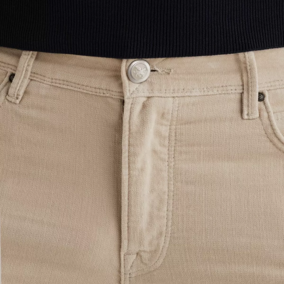 Super V7 broek van Vanguard er zit en lichte rib in de stof wat de broek bijzonder maakt. Combineert heel leuk met de bruin tinten die op dit moment helemaal mode zijn.